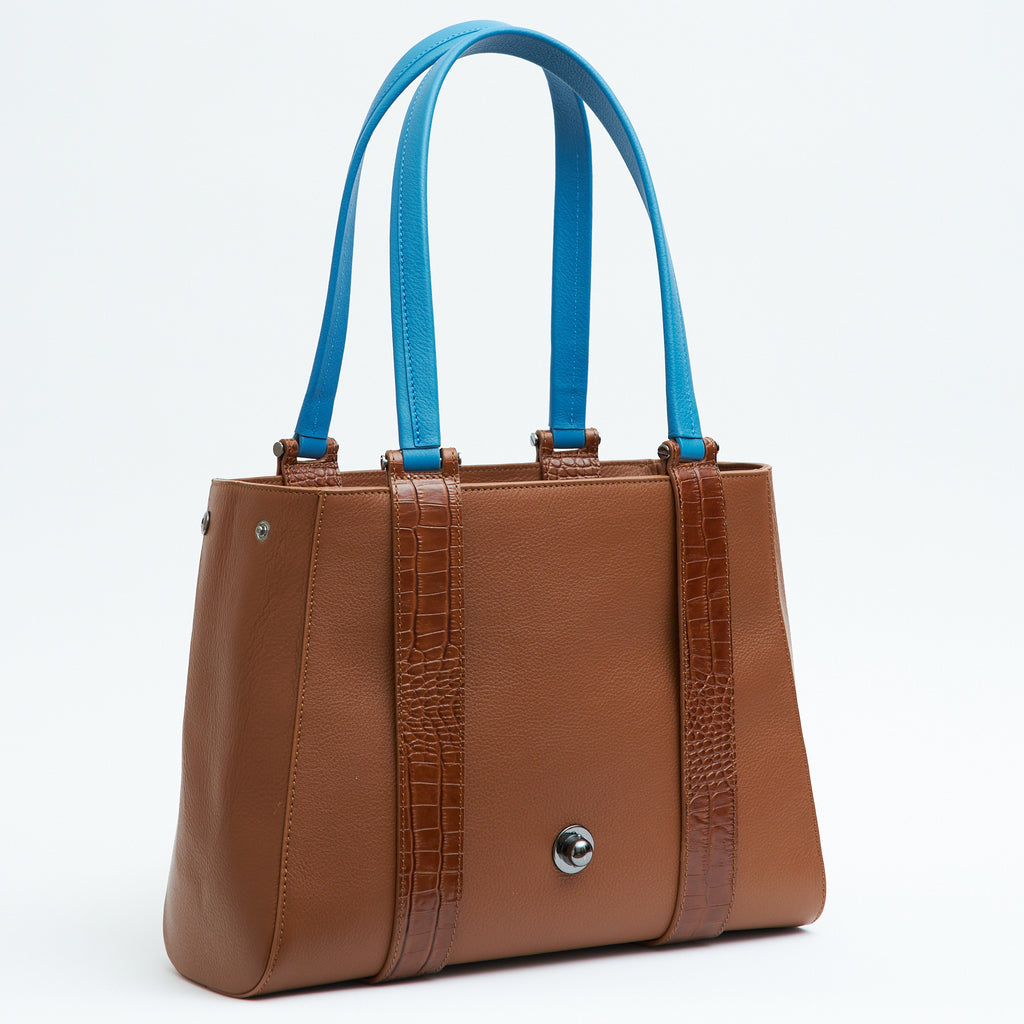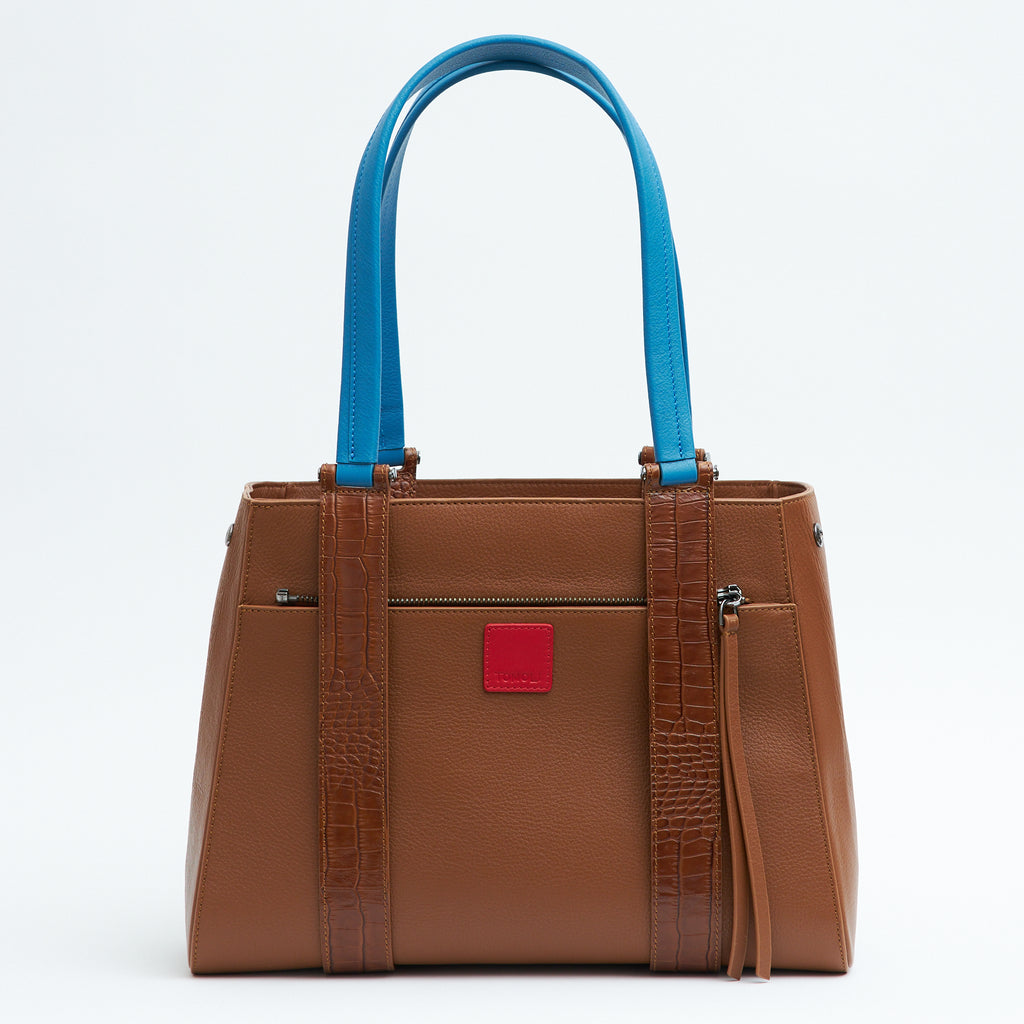 Go for a clean yet striking vibe with the Briffani Orbit leather tote handbag. The Briffani Orbit features a clean and classic silhouette that effortlessly completes dressy and casual looks alike. This sleek tote handbag comes in bright hues and deep tones to suit all your color moods. The Briffani Orbit is part of the Tomoli Briffani line that features one-of-a-kind interchangeable handbags. These multifaceted and colorful designs let you effortlessly mix and match bag colors and styles to indulge your creative whims. With its versatile size and classic allure, the Briffani makes the perfect everyday bag or work bag. The Briffani Lean is lightweight, fits your laptop, and comes with a removable shoulder strap.